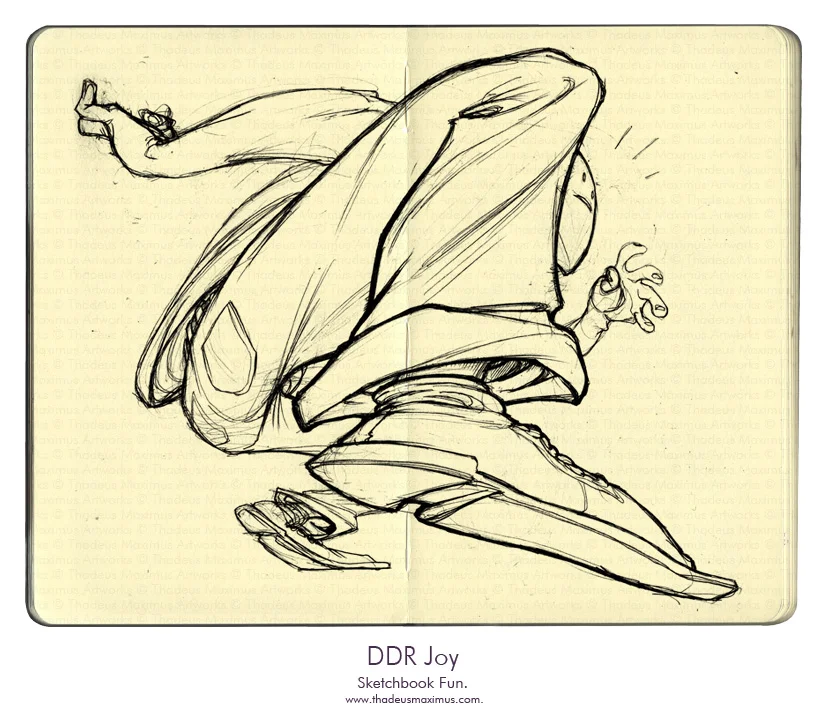 This sketch celebrates the hilaritizing dance of the DDR. Upon experiencing this movement myself, such a visual documentation just had to be documented.