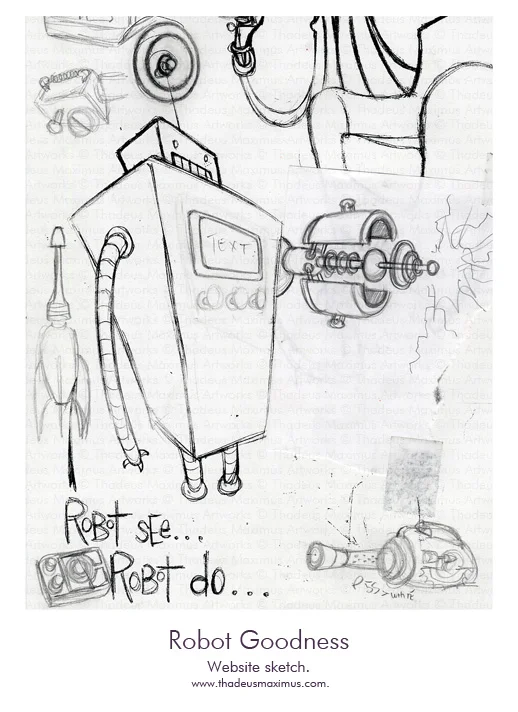 This sketch celebrates the glee of wrenchingly robotic radiance. Forever fascinated with how the 1950's perceived our future, this robot is one of many that salute such intoxicatingly creative futuristic ideals.